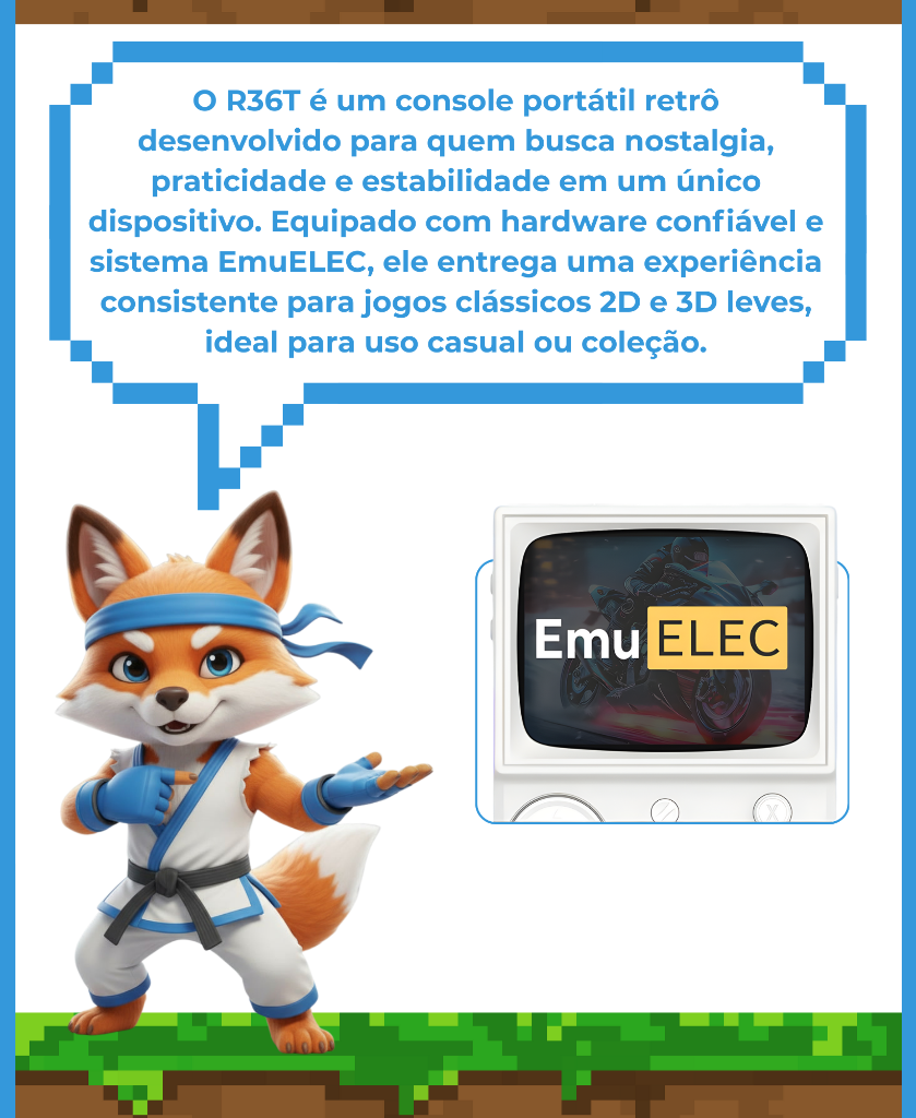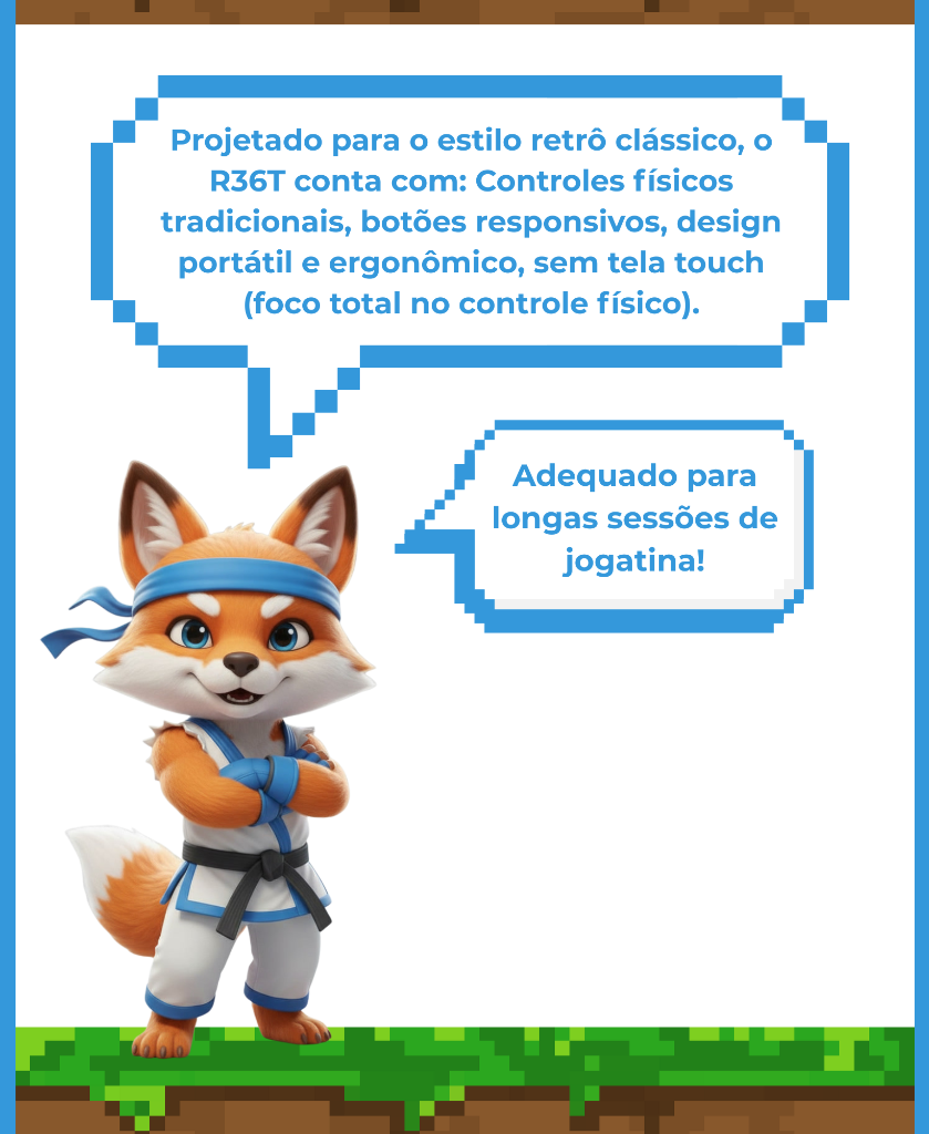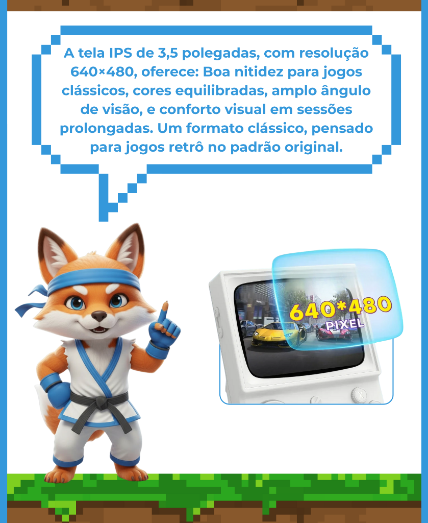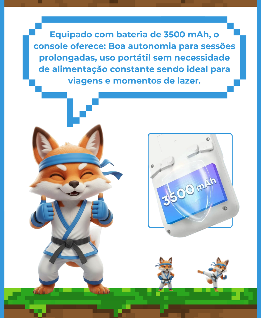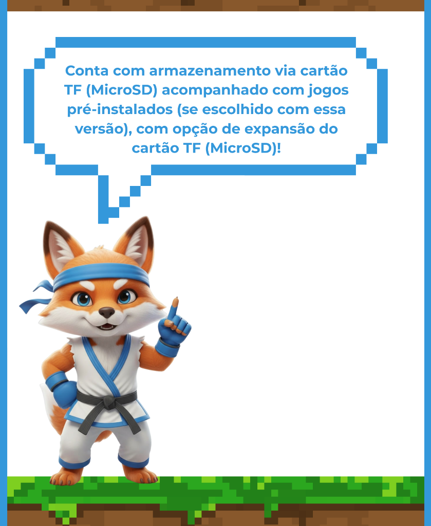 - Armazenamento: Cartão TF (MicroSD) incluso no console