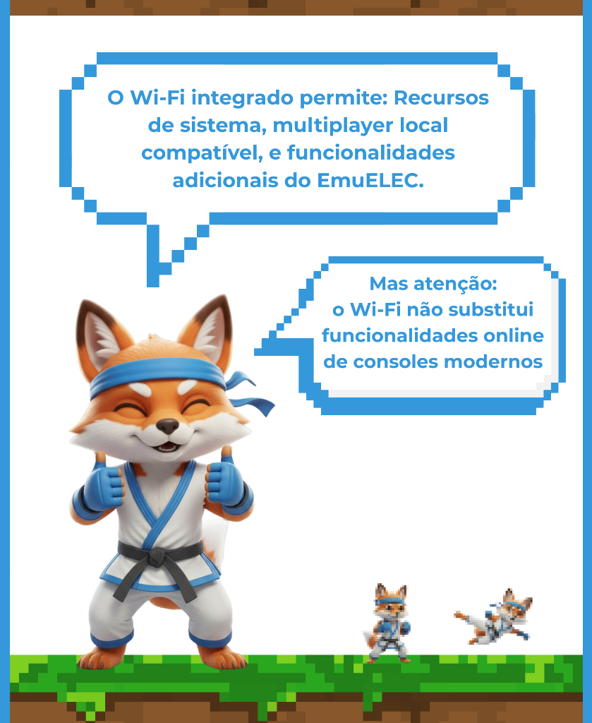 - O Wi-Fi é voltado a recursos do sistema e multiplayer local, não substituindo consoles modernos.